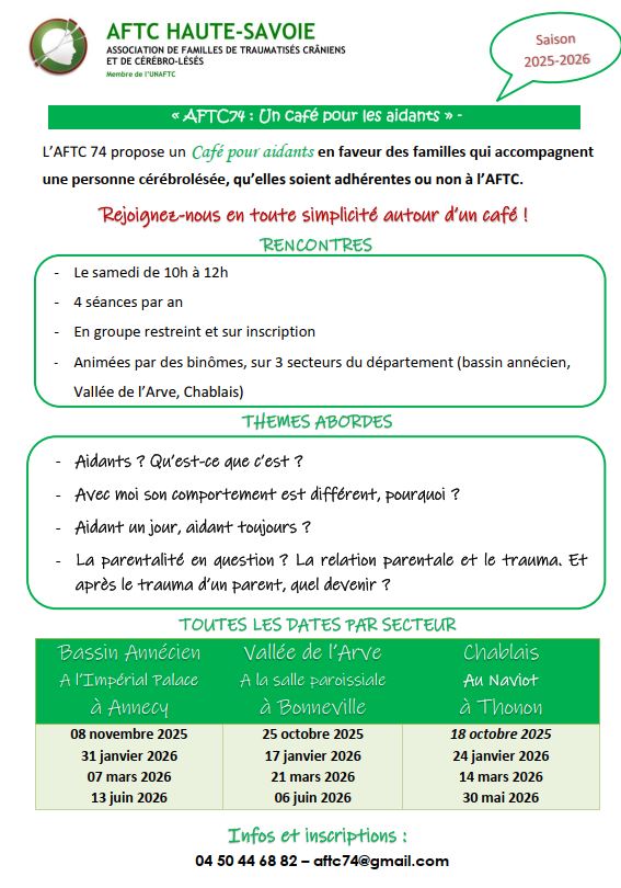 L’AFTC organise 3 cafés pour les aidants, sur 3 secteurs du département :