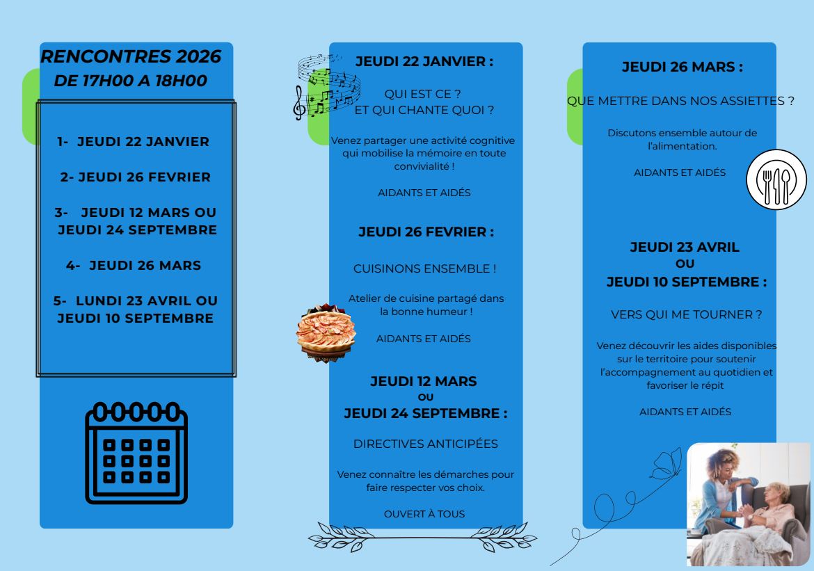 - Ateliers à destination des Aidants : Mercredi 11 Mars de 9h30 à 11h30, Atelier Boite à outils des Aidants « Accompagner la santé de son proche » à Vetraz-Monthoux.
