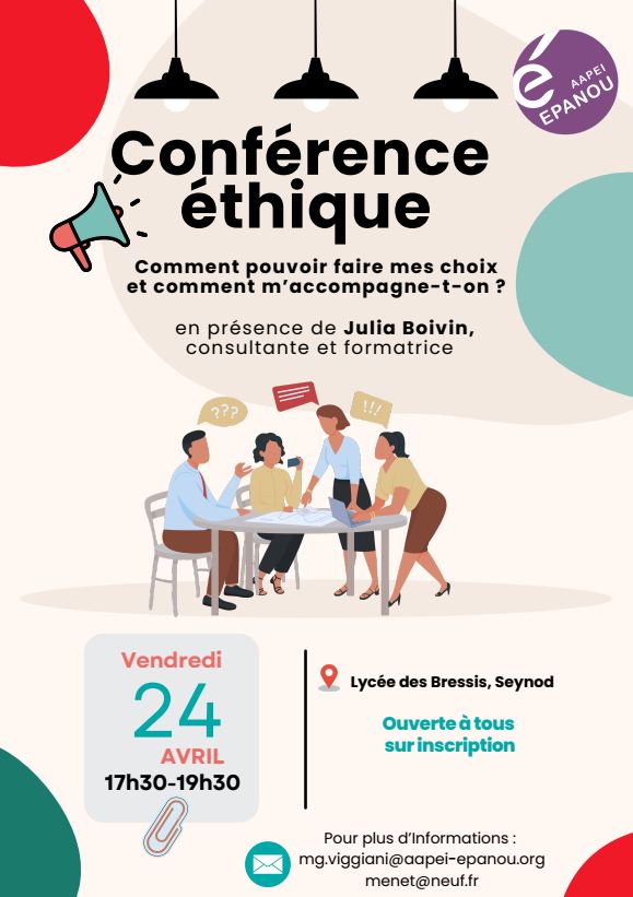 - Organisation d’une conférence « Comment pouvoir faire mes choix et comment m’accompagne-t-on ? » avec l’intervention de Julia Boivin, le 24/04 à Seynod.