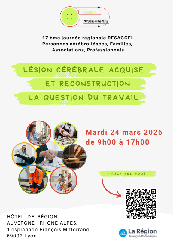 Le mardi 24 mars auria lieu le fameux colloque régional du réseau Resaccel à Lyon sur le thème : « Lésion Cérébrale Acquise et reconstruction – La question du travail ». Alain Germain, président de l’AFTC animera une table ronde avec la participation d’adhérents de l’AFTC 74 pour témoigner. (affiche ci-dessous)