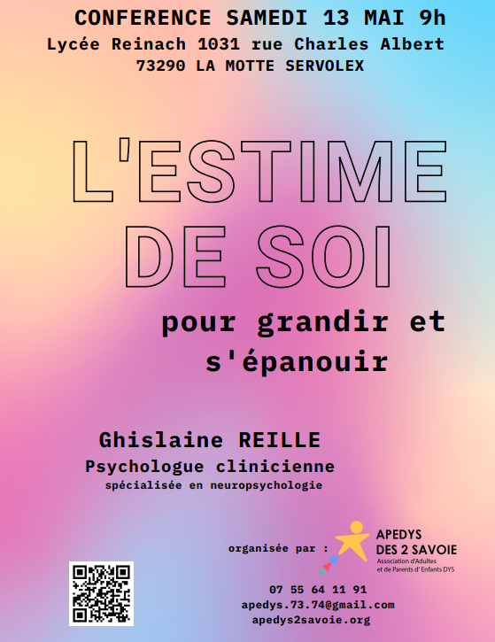 « L’estime de soi, pour grandir et s’épanouir » : l’APEDYS des 2 Savoie (Association d’Adultes et de Parents d’Enfants DYS) organise une conférence le samedi 13 mai à 9h.