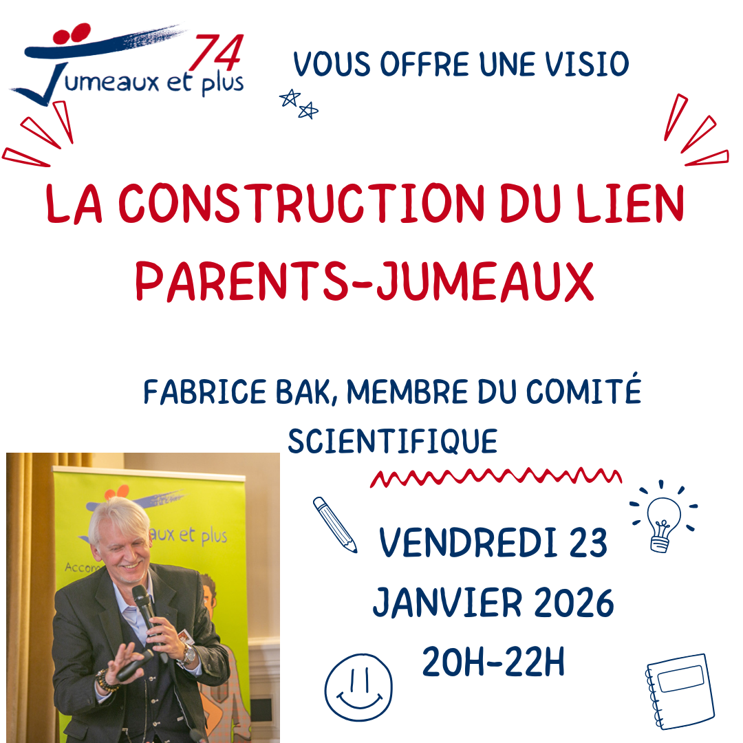 - 23 janvier : visio de Fabrice Bak « la construction du lien parents-jumeaux » de 20h à 22h