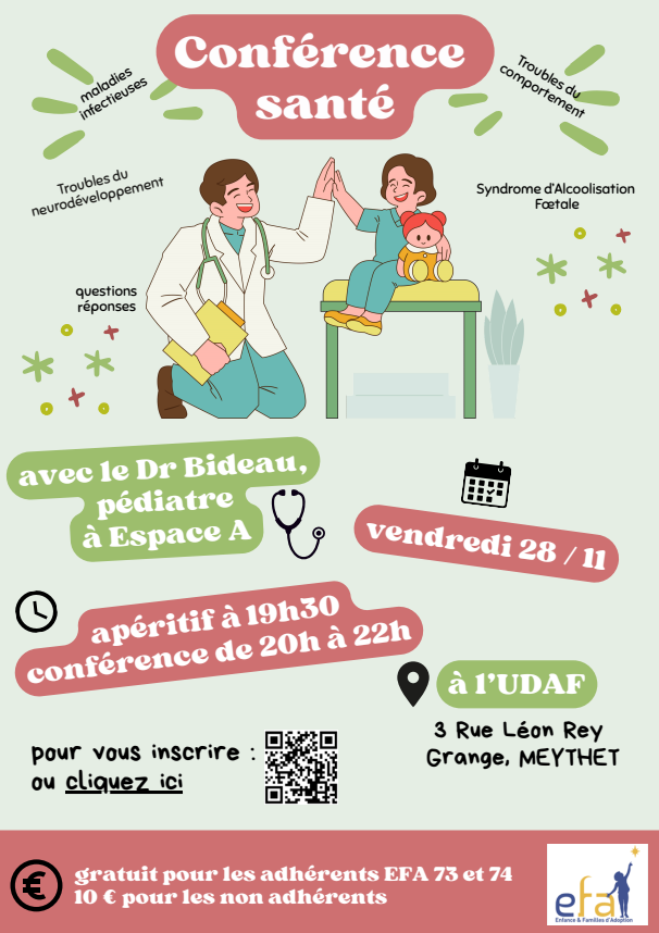 EFA 74 (Enfance et Familles d’adoption) organise une conférence sur la santé des enfants adoptés, le vendredi 28 novembre à 20h.