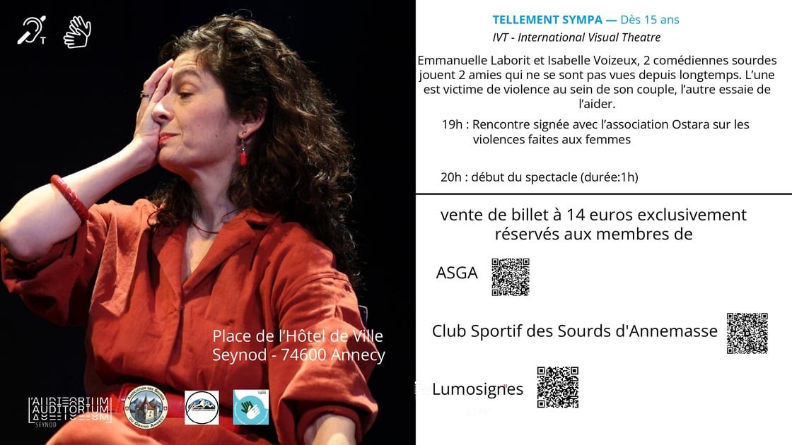 Le spectacle d’Emmanuel Laborit, « Tellement sympa » qui aura lieu le 28 novembre à 20h à l’Auditorium de Seynod sera accessible aux personnes sourdes et malentendantes. Il sera précédé d’une sensibilisation aux violences sexistes et sexuelles réalisée par l’association Ostara, à partir de 19h (le spectacle et la sensibilisations seront signés).