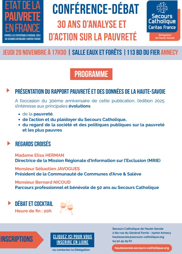 Inscription obligatoire via ce lien ou auprès du secrétariat : hautesavoie@secours-catholique.org, 04 50 45 29 67